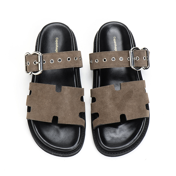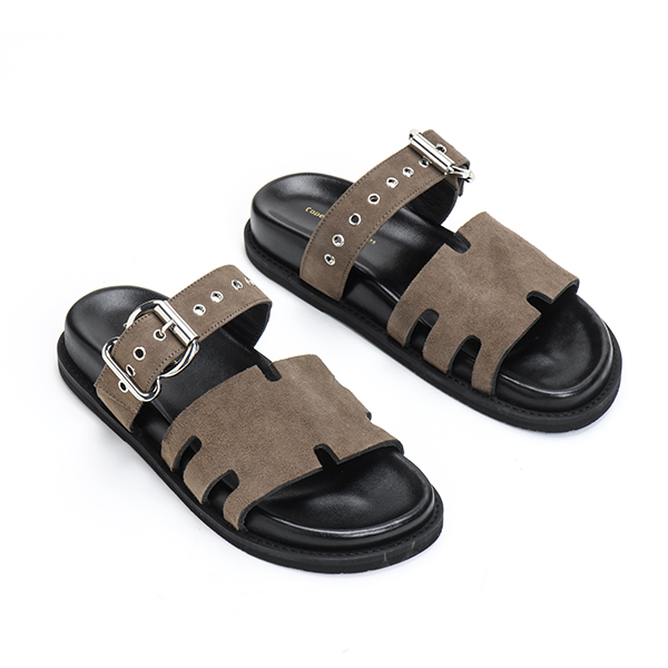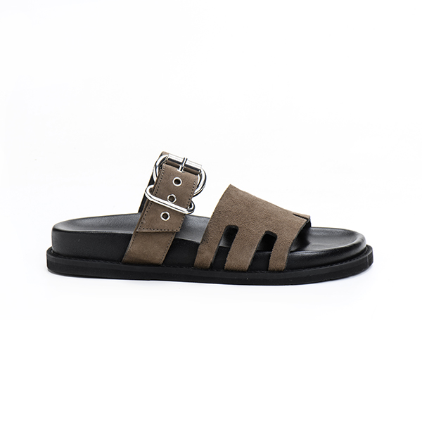 כפכפים מעור זמש רך עם רצועה מתכווננת ואבזם מתכת כסוף
