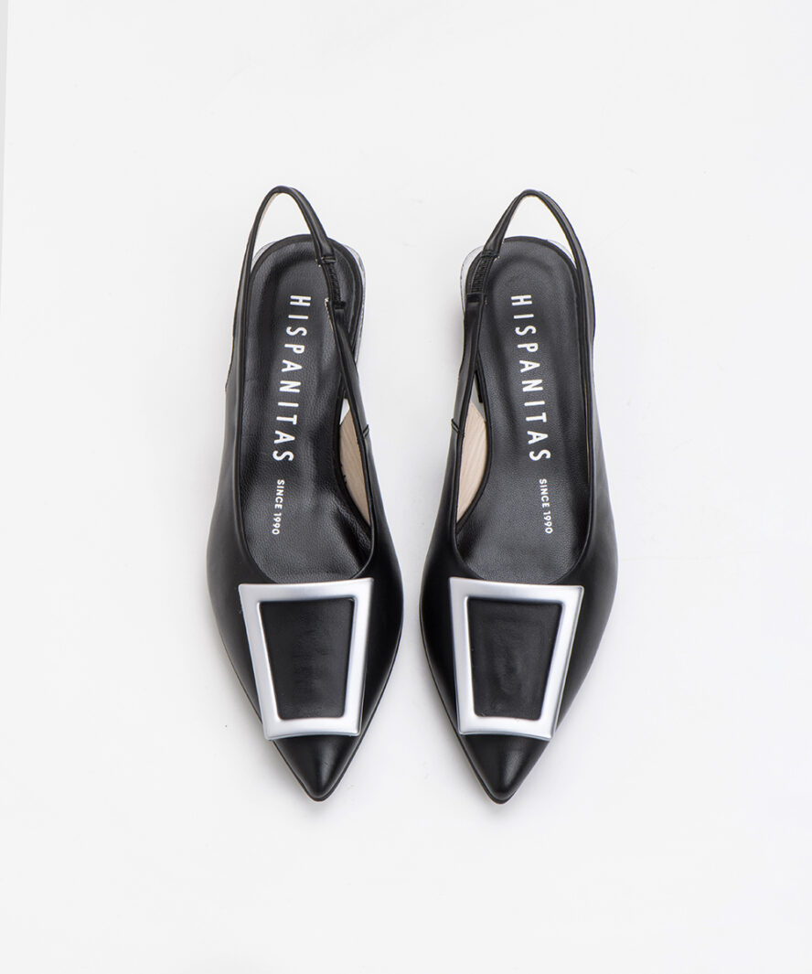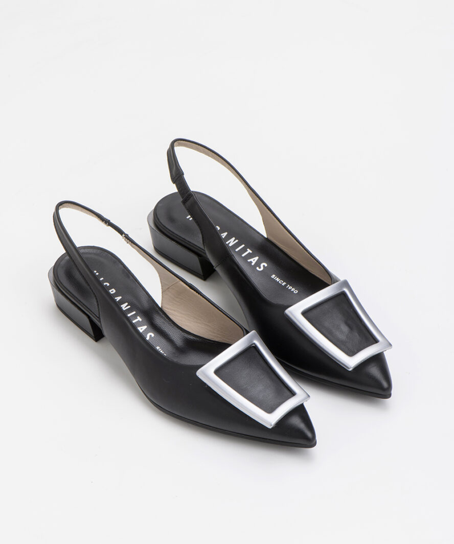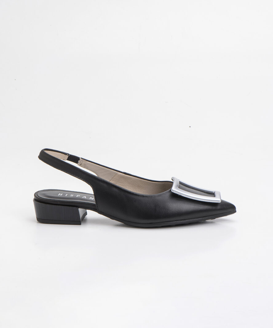 - נעל סירה מחודדת מעור עם עקב פתוח ואבזם כסוף