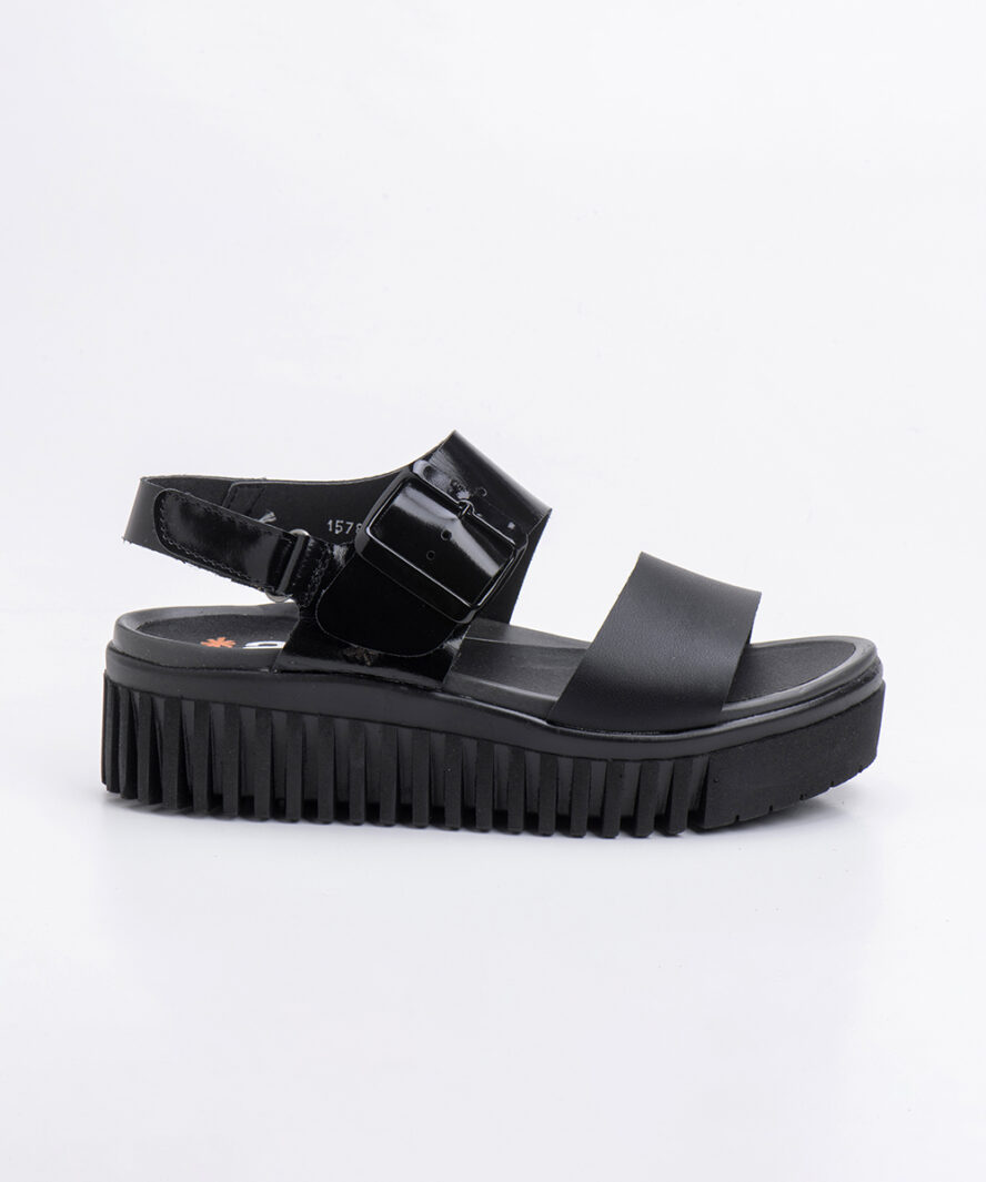 סנדל עם רצועות עור רחבות וסוליית פלטפורמה יציבה ורצועת קרסול עם סגירת אבזם של חברת ART