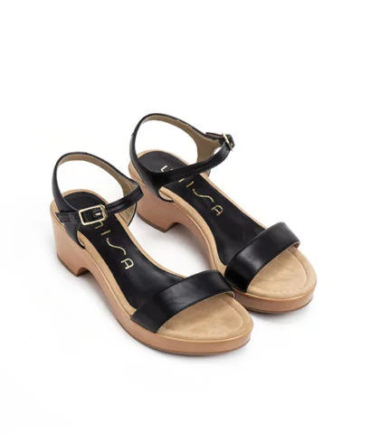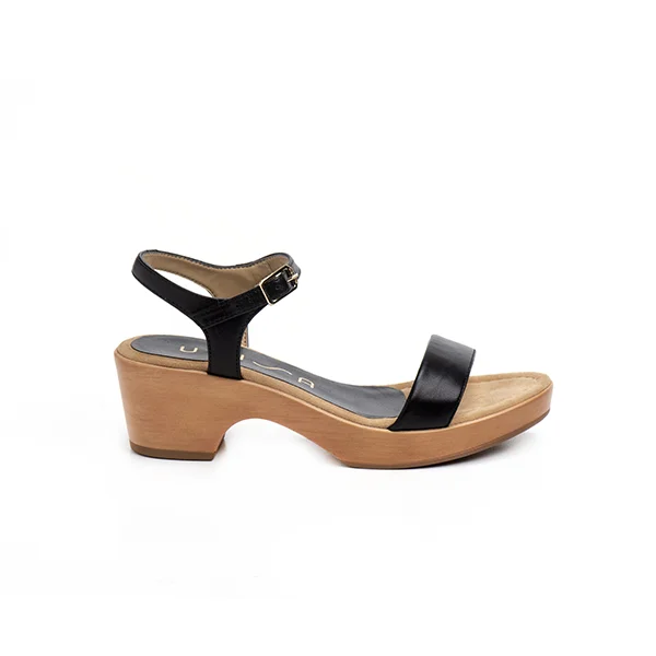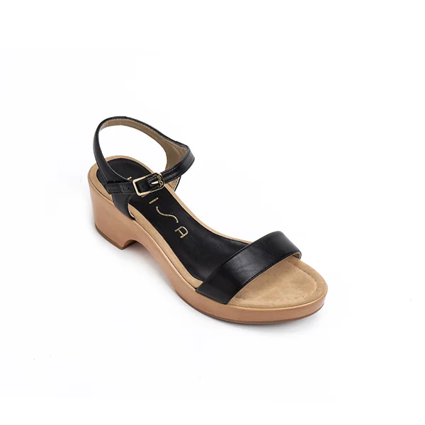 IRITA – סנדל עור שחור. סגירה ע”י אבזם סוליה יציקה PU עם עקב 5.5 גבוה ופלטפורמה בגודל 2 ס”מ.